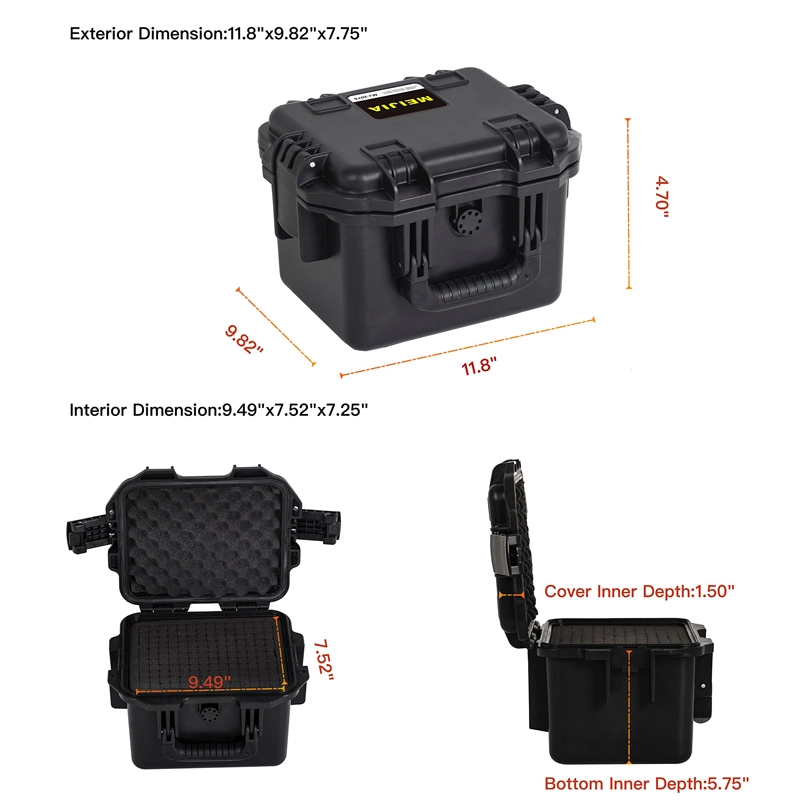 ● Külső dimenzió: 11,8 "x9.82" x7.75 ".Side Dimenzió: 9.49" X7.52 "X7.25" .Cover Belső mélység: 1,5 ".Bottom Belső mélység: 5,75". Súly habbal: 3,70 lbs. Az összes értékelése, amelyet értékel, például lencsét, kamerát, drónokat, órákat.